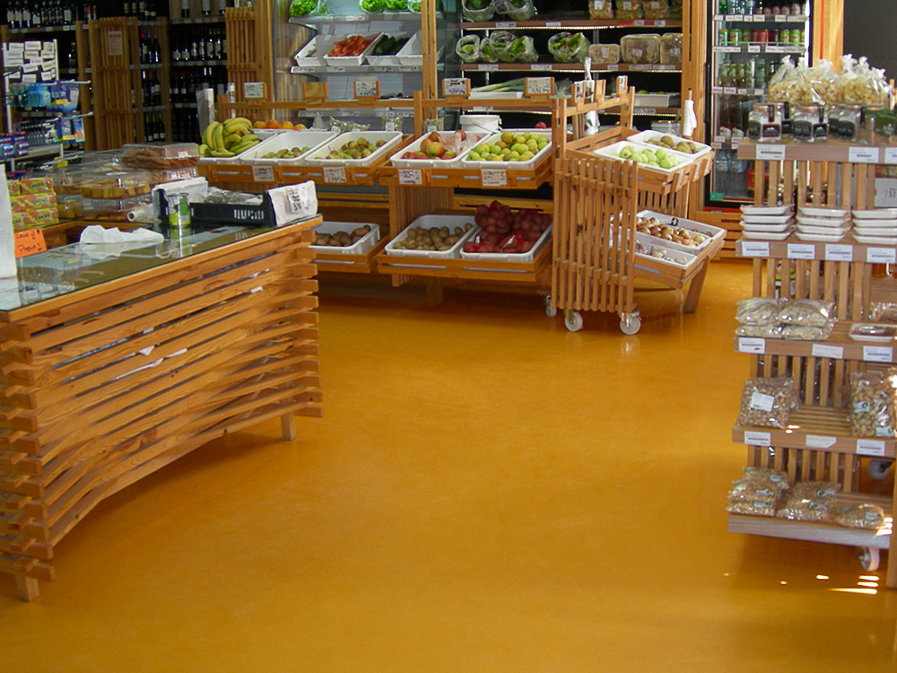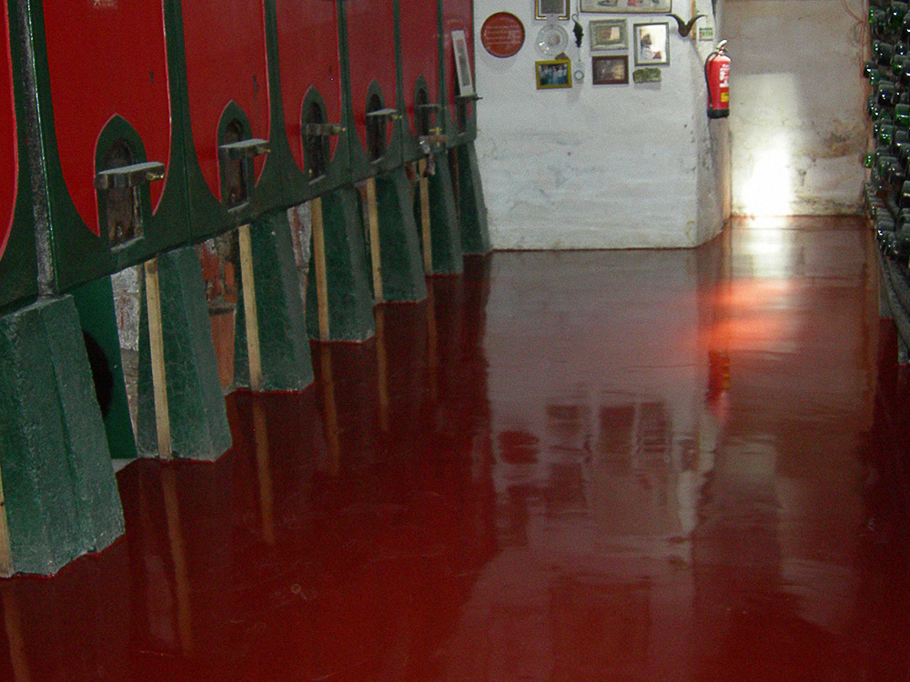 Sistema autonivelante contínuo com superfície lisa, constituído por tinta epoxy ou tinta poliuretano. Acabamentos brilhante ou mate, com verniz poliuretano.